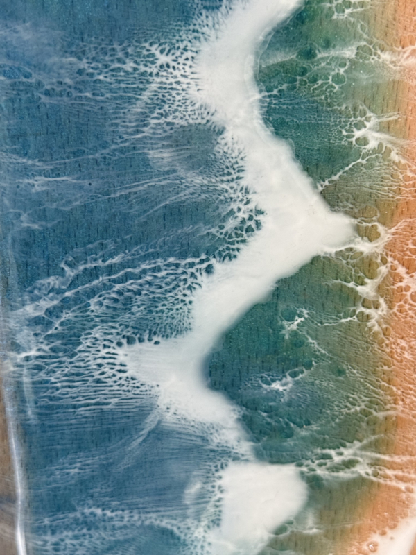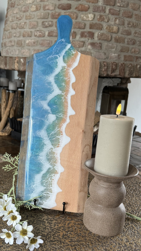 De plank is met de hand afgewerkt in een opvallend dubbel zee-effect, waarbij tinten van groen en blauw op elegante wijze samensmelten. Dit unieke kleurenspel roept direct een maritieme sfeer op en maakt van elke plank een uniek stuk.